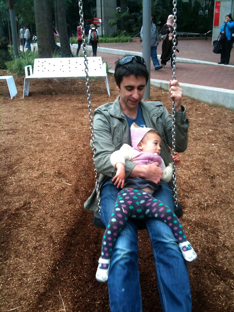 Yesterday we went to Darling Harbour and had soup at Paddys market. We had been there a few weeks ago when we went to see Mary Poppins at the Capitol Theatre. This time I had a seafood wonton noodle soup. Mine was ok, did not finish it and the noodles (yellow noodles) had a very strong smell like some chemical or strange bleach. yuck. Jas's soup was ok, he had rice noodles and his did not smell. Joaquin had sushi-salmon and prawns and Zalia did not eat just breasted. After lunch we walked over to the Pearl tea shop near the elevators and we had a pearl tea and Zalia loves holding the drink bottle. Mine was almond milk nice but I forgot the pearl jelly balls. Its nice to suck them up the straws. We then walked over to Darling Harbour to the South American Festival and to check out the new playground. It is really good playground, like a water playground but good for kids over 4 I think. They can climb, move water, pump water and play on a flying fox.